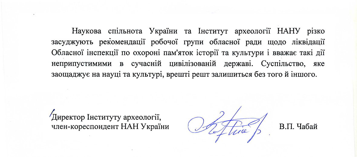 В цій ситуації виникає кілька питань: Скільки мільйонів гривень коштує культурне надбання області? А її туристична привабливість? Хто в разі знищення Інспекції виконуватиме контролюючі та охоронні функції по збереженню культурної спадщини? Де знайти кваліфікованих спеціалістів для цієї роботи в райцентрах і громадах?